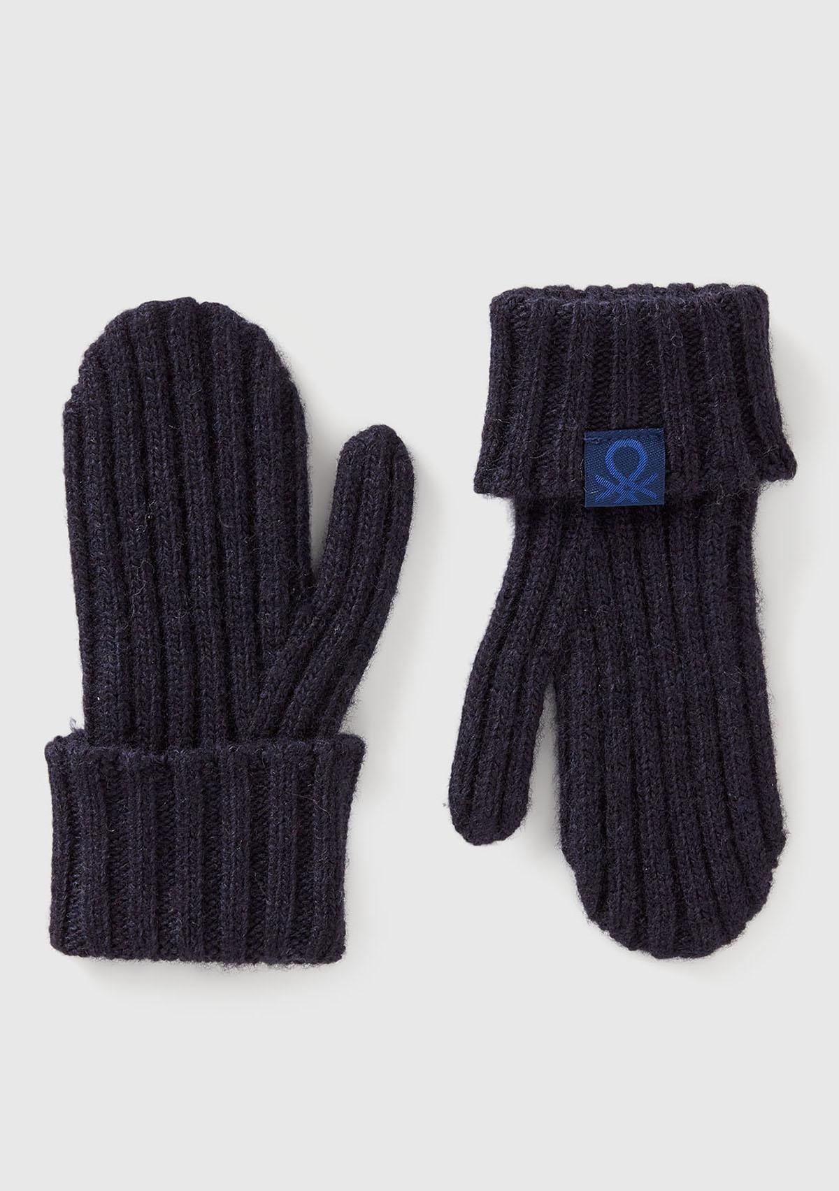 Erkek Çocuk Lacivert Yün ve Viskoz Karışımlı Logo Etiketli Nervürlü Eldiven
