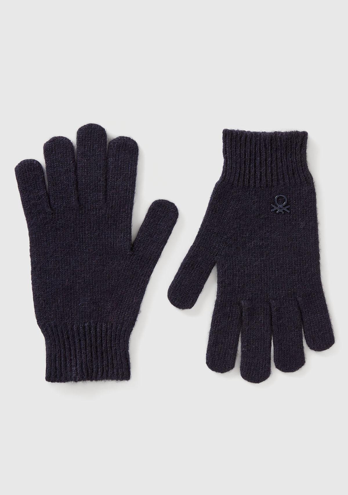 Erkek Çocuk Lacivert Yün ve Viskoz Karışımlı Logo Nakışlı Eldiven