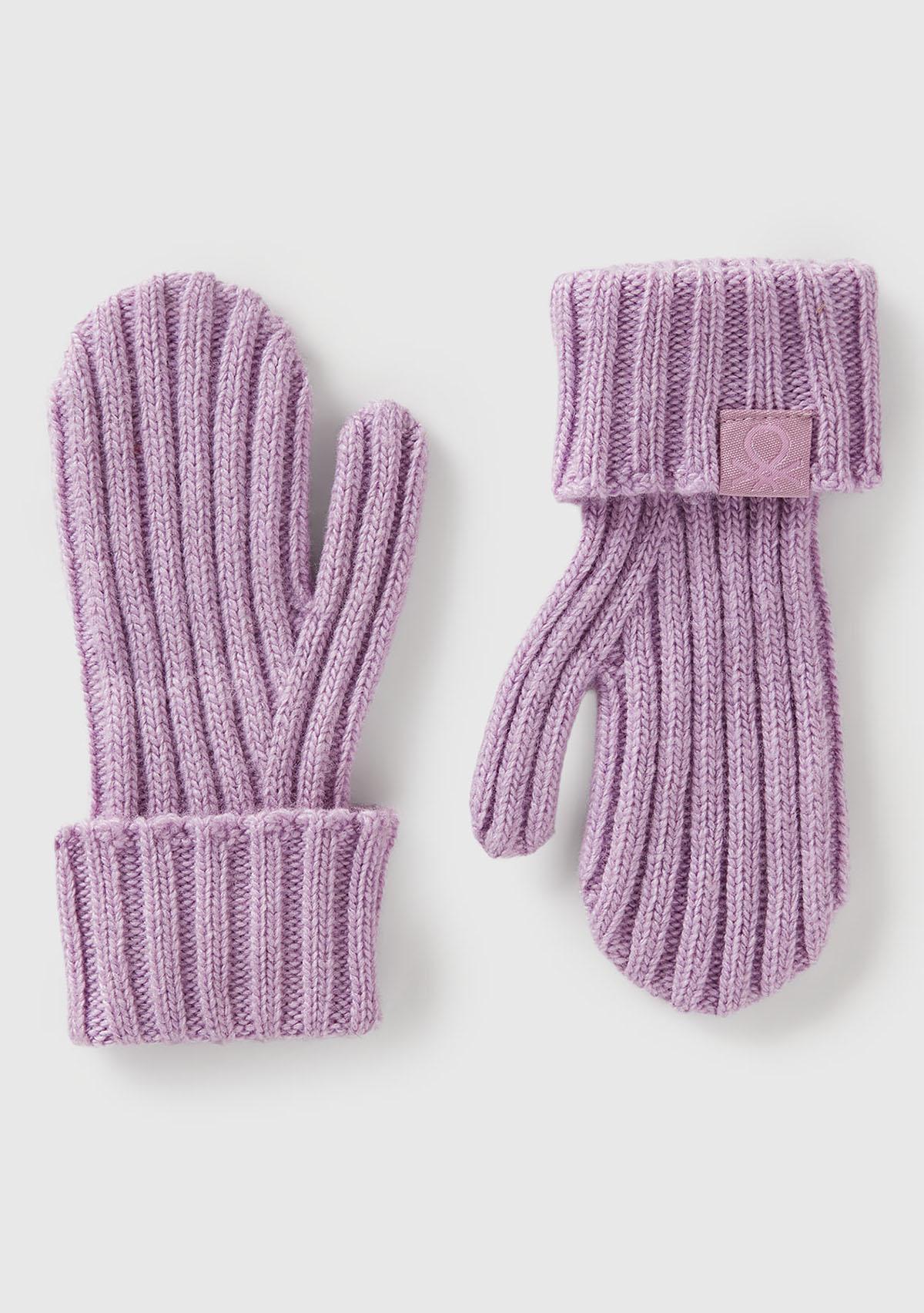 Erkek Çocuk Lila Yün ve Viskoz Karışımlı Logo Etiketli Nervürlü Eldiven