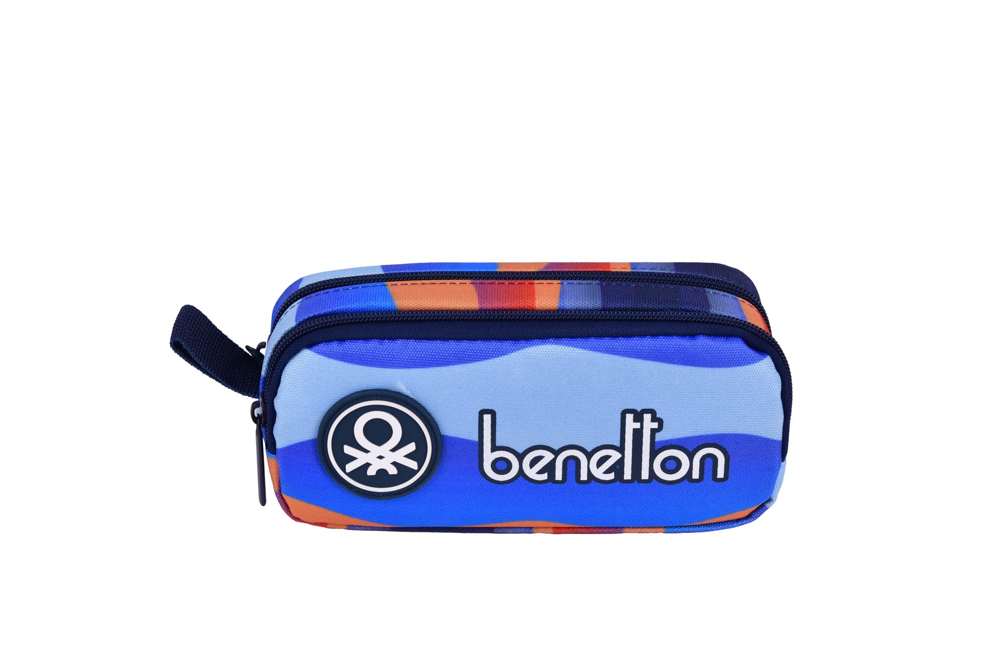 Erkek Çocuk Mavi Kamuflaj Desenli Benetton Yazılı Çift Bölme Kalem Kutusu