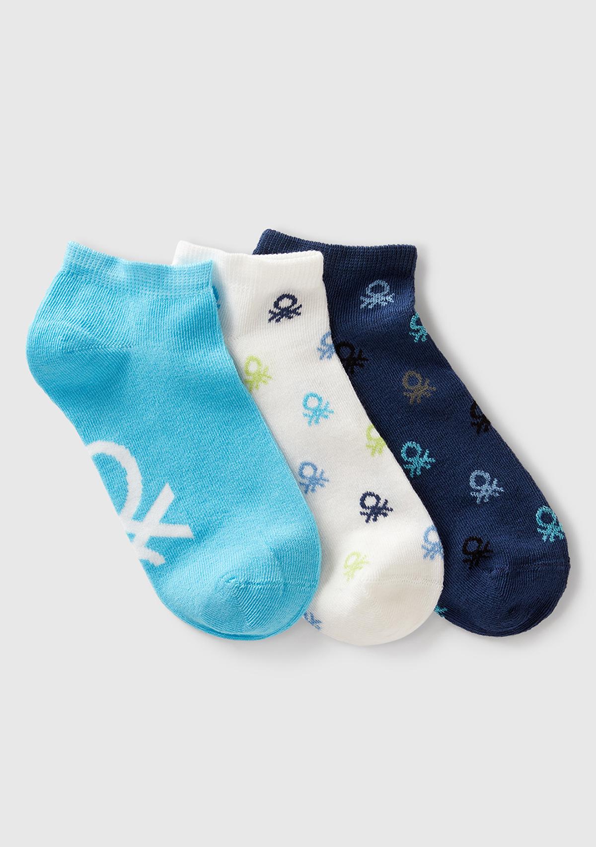 Erkek Çocuk Mavi Mix Desenli 3'lü Patik Çorap Seti