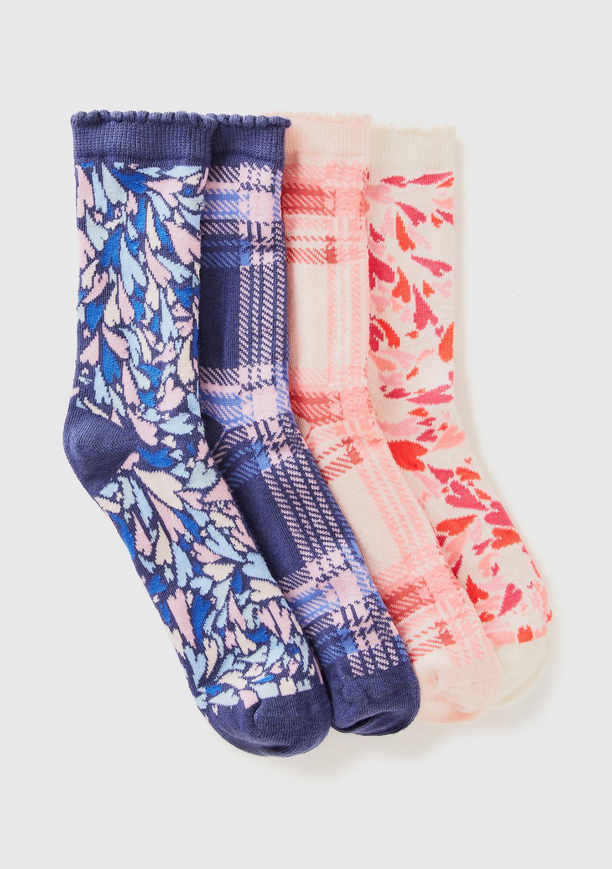 Erkek Çocuk Mavi Mix Desenli 4'lü Uzun Soket Çorap Seti