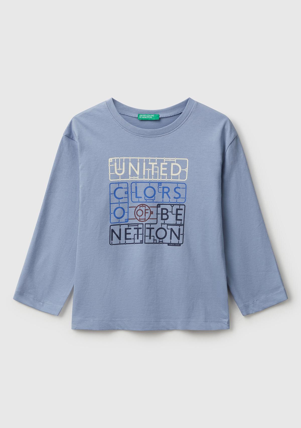 "name": "Erkek Çocuk Mavi Organik Pamuklu Önü Logo Baskılı Uzun Kollu Jarse T\u002Dshirt",