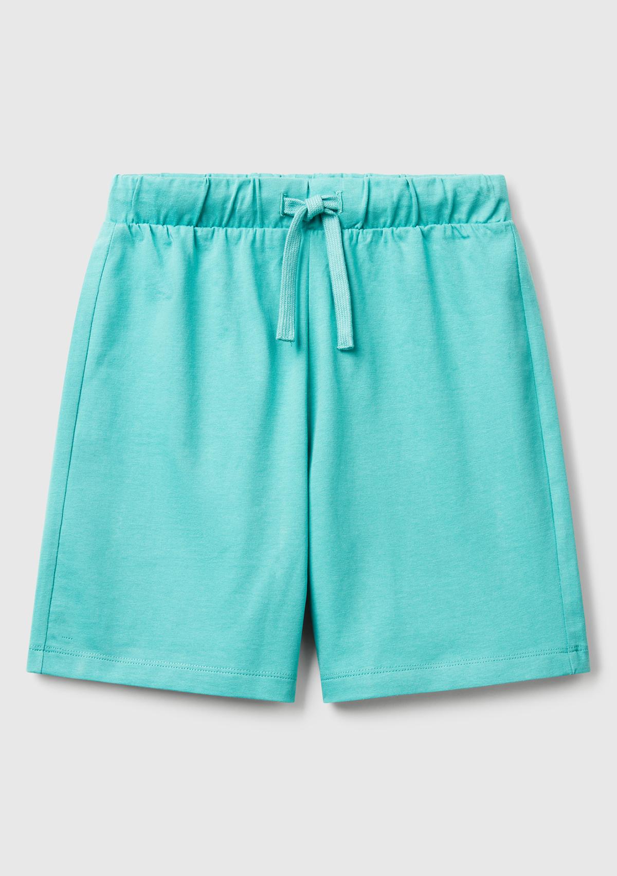 Erkek Çocuk Mint Yeşili Arka Cebi Logo Baskılı Beli İpli Şort