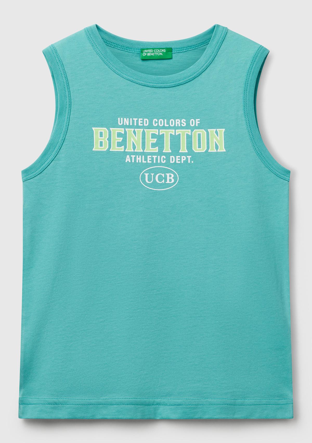 Erkek Çocuk Mint Yeşili Benetton Logo Baskılı Atlet