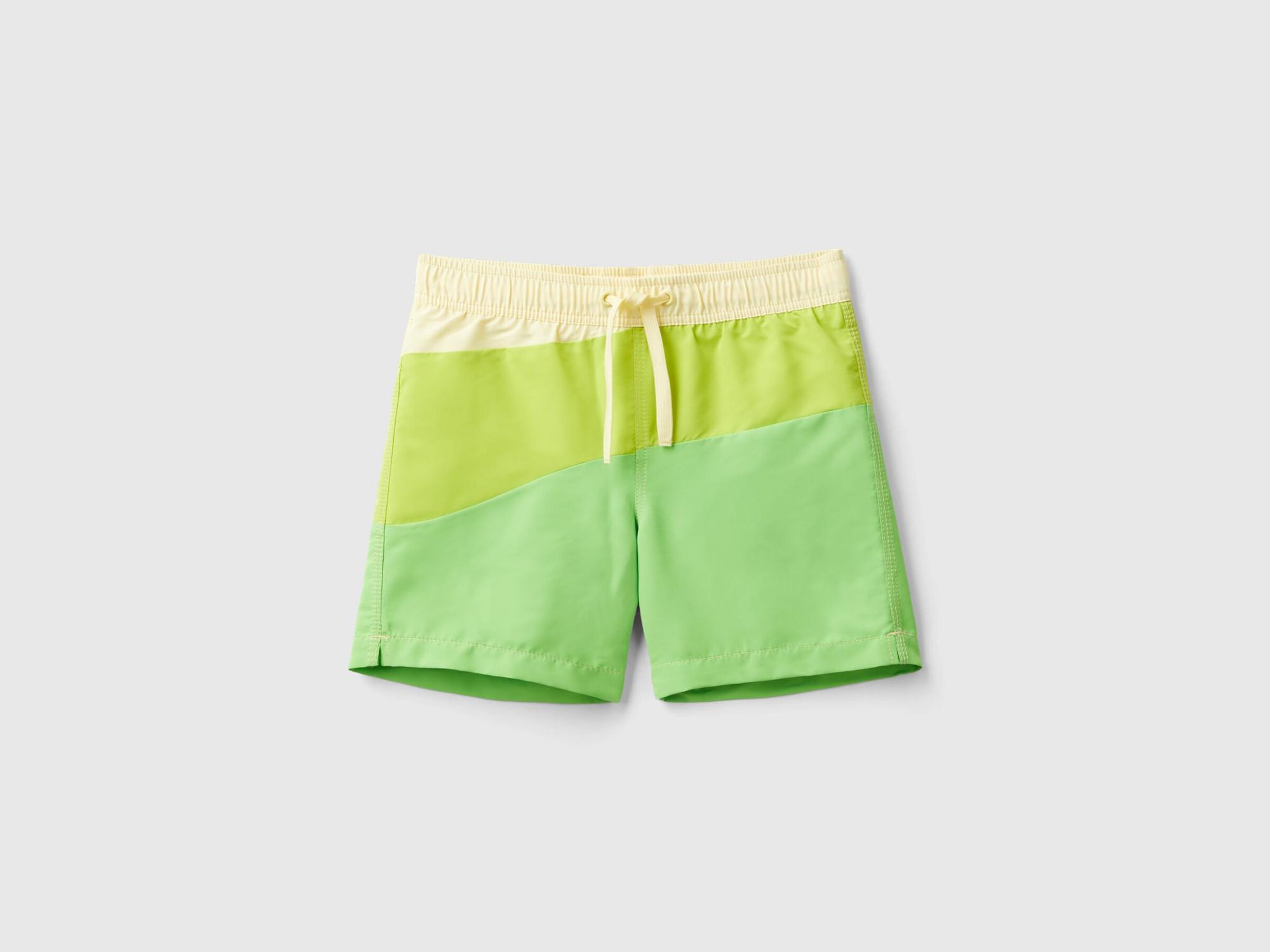 Erkek Çocuk Neon Yeşil Renk Bloklu Arkası Yama Cepli Beli Büzgülü Deniz Şortu