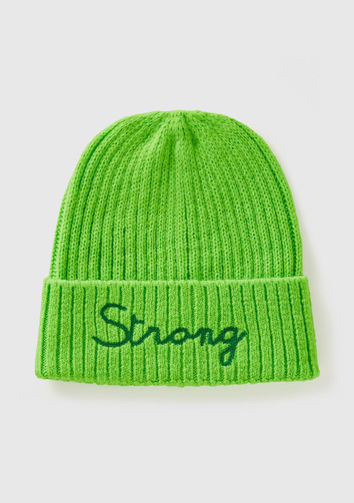 Erkek Çocuk Neon Yeşil Yün Karışımlı Slogan Yazılı Bere. Koyun Yünü İçerir