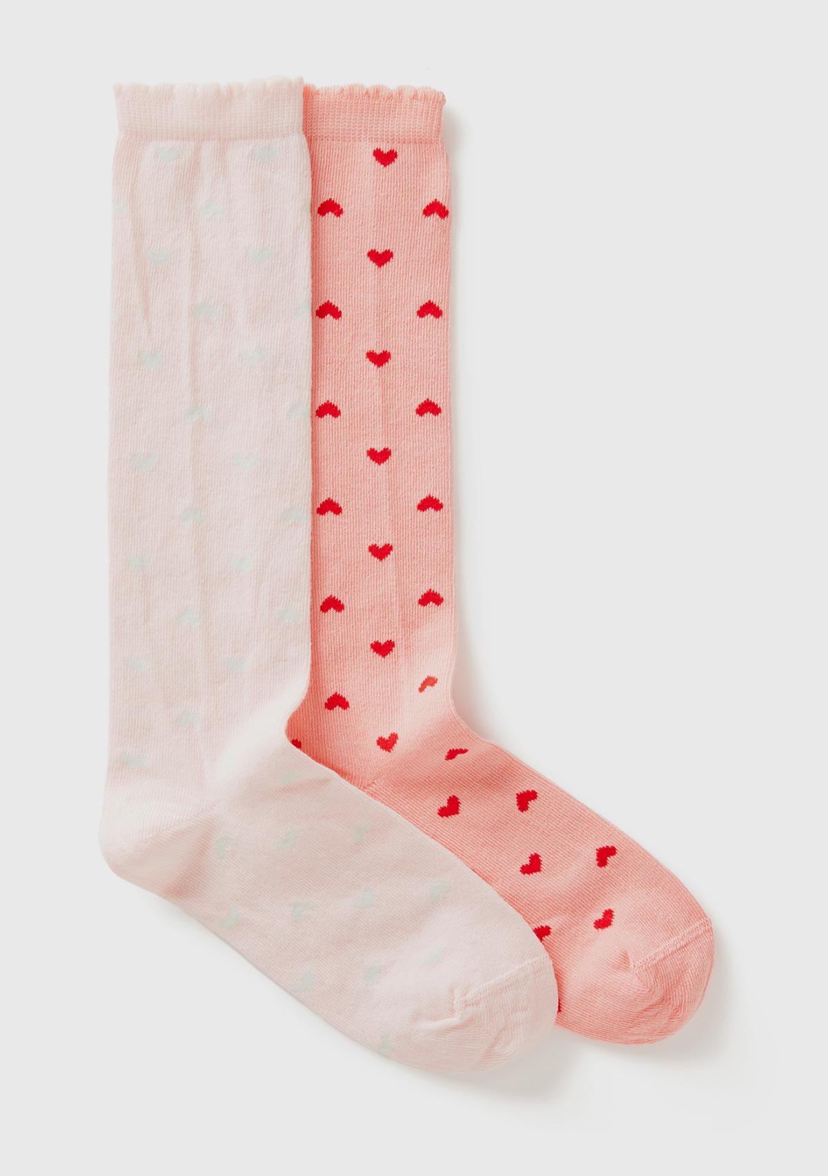 Erkek Çocuk Pembe Mix Desenli Ucu Fırfırlı 2'li Uzun Soket Çorap Seti