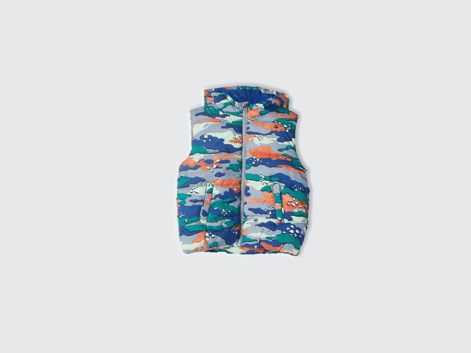 Erkek Çocuk Renkli Kamuflaj Fermuar Kapamalı Tamamı Desenli Kapüşonlu Yelek