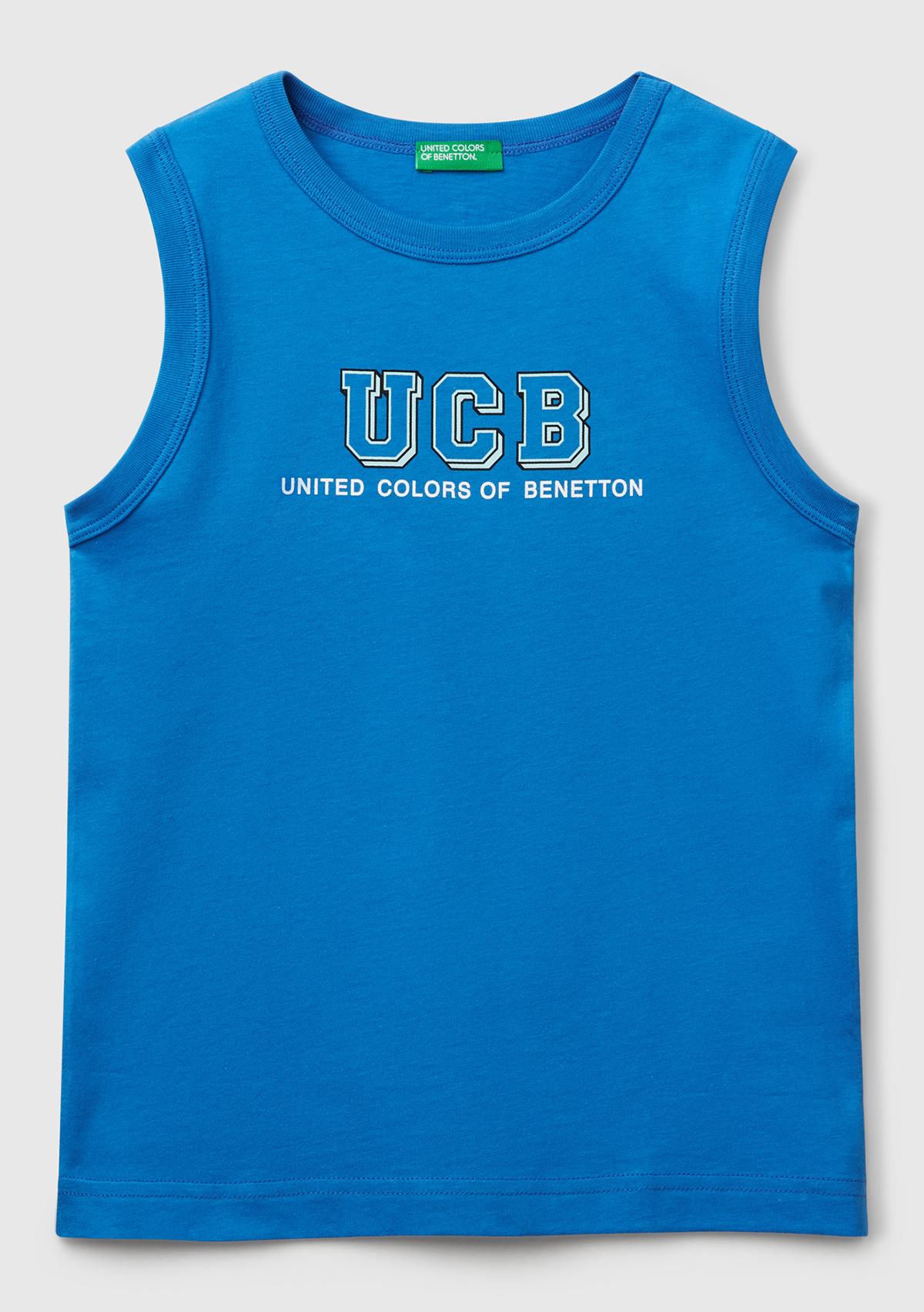 Erkek Çocuk Saks Mavi Benetton Logo Baskılı Atlet
