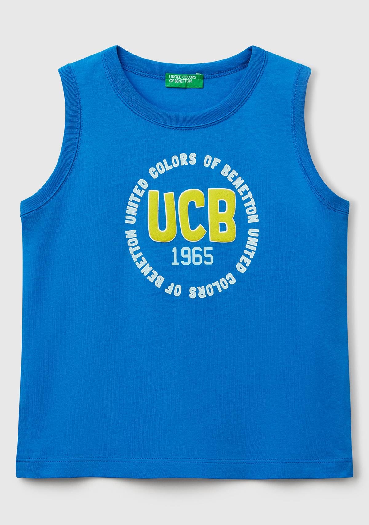 Erkek Çocuk Saks Mavi Benetton Logo Baskılı Kabartma Detaylı Atlet