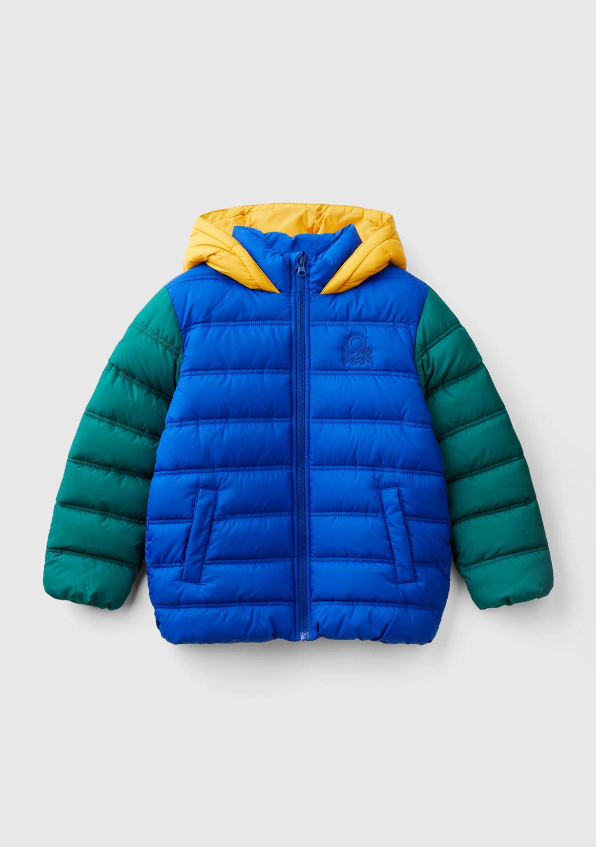 Erkek Çocuk Saks Mavi Logo İşlemeli Pufa Mont