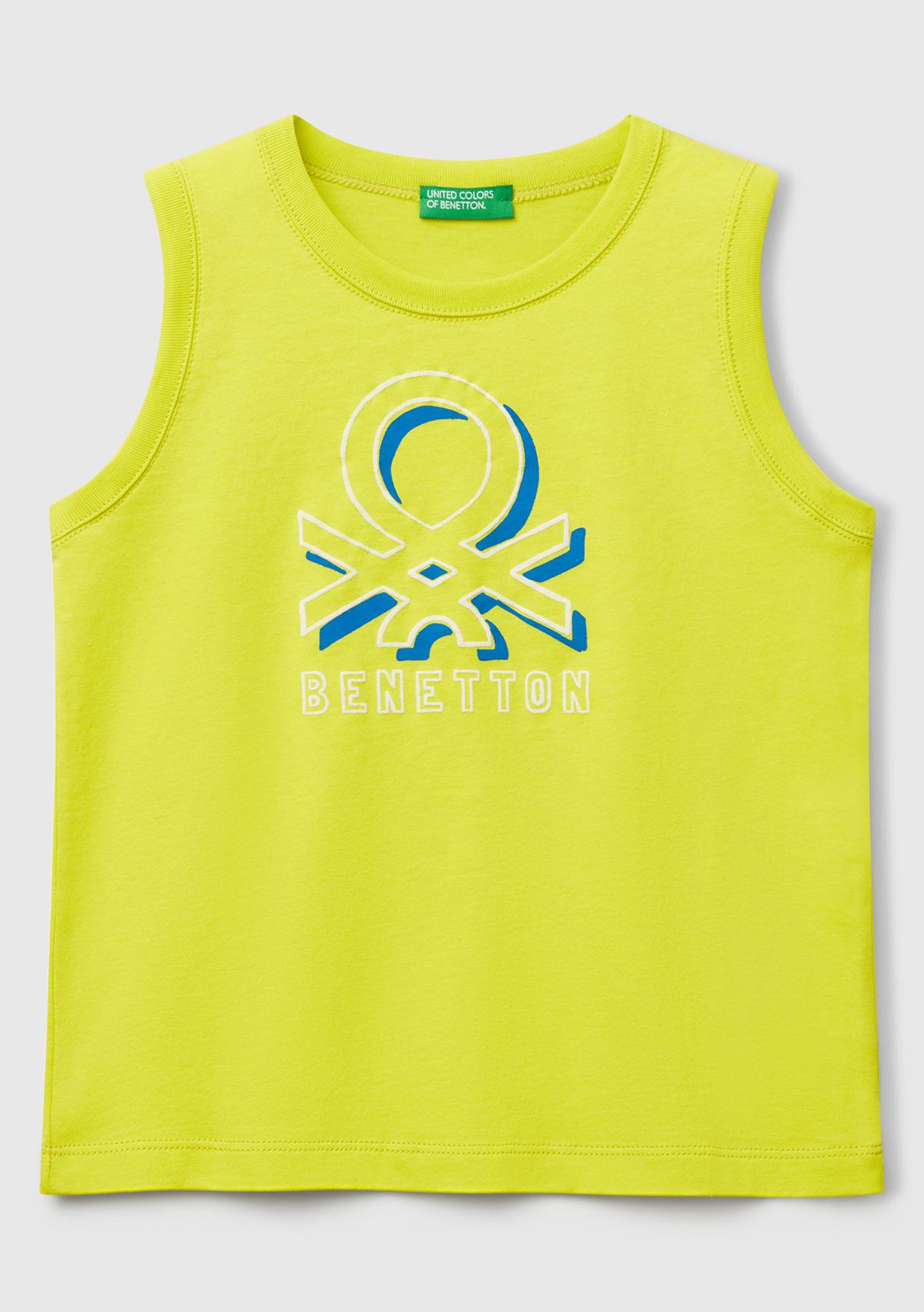 Erkek Çocuk Sarı Benetton Logo Baskılı Kabartma Detaylı Atlet