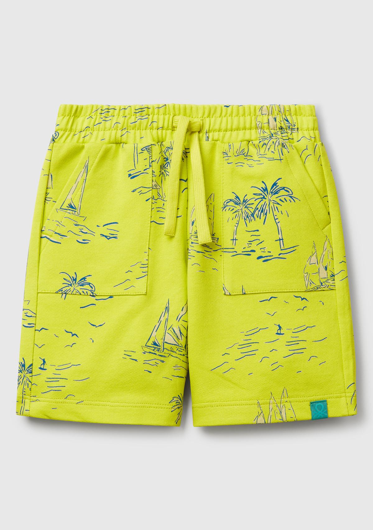 Erkek Çocuk Sarı Tamamı Desenli Beli İpli Cepli Bermuda Şort