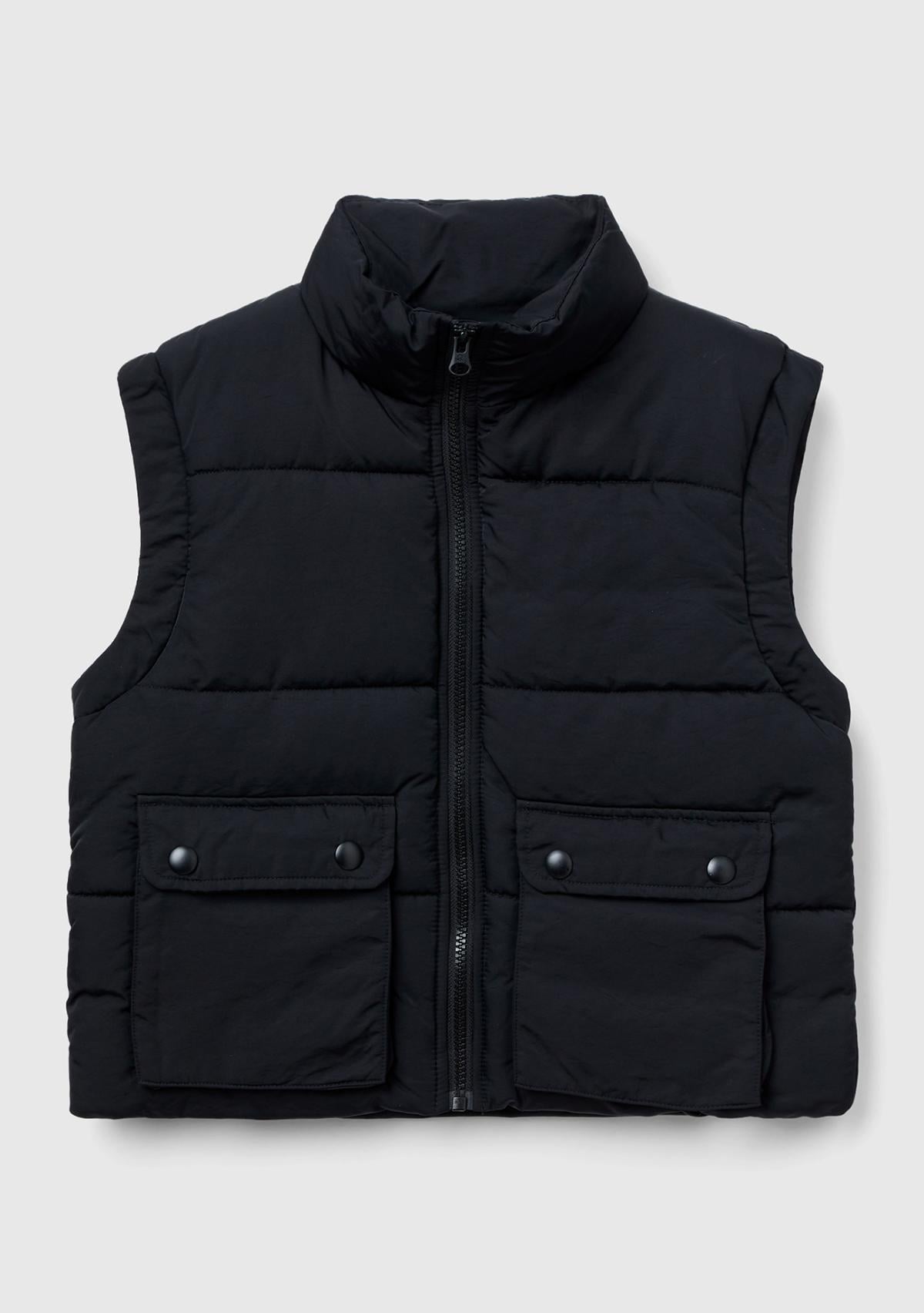 Erkek Çocuk Siyah Ceplerinde Düğme Detaylı Pufa Yelek