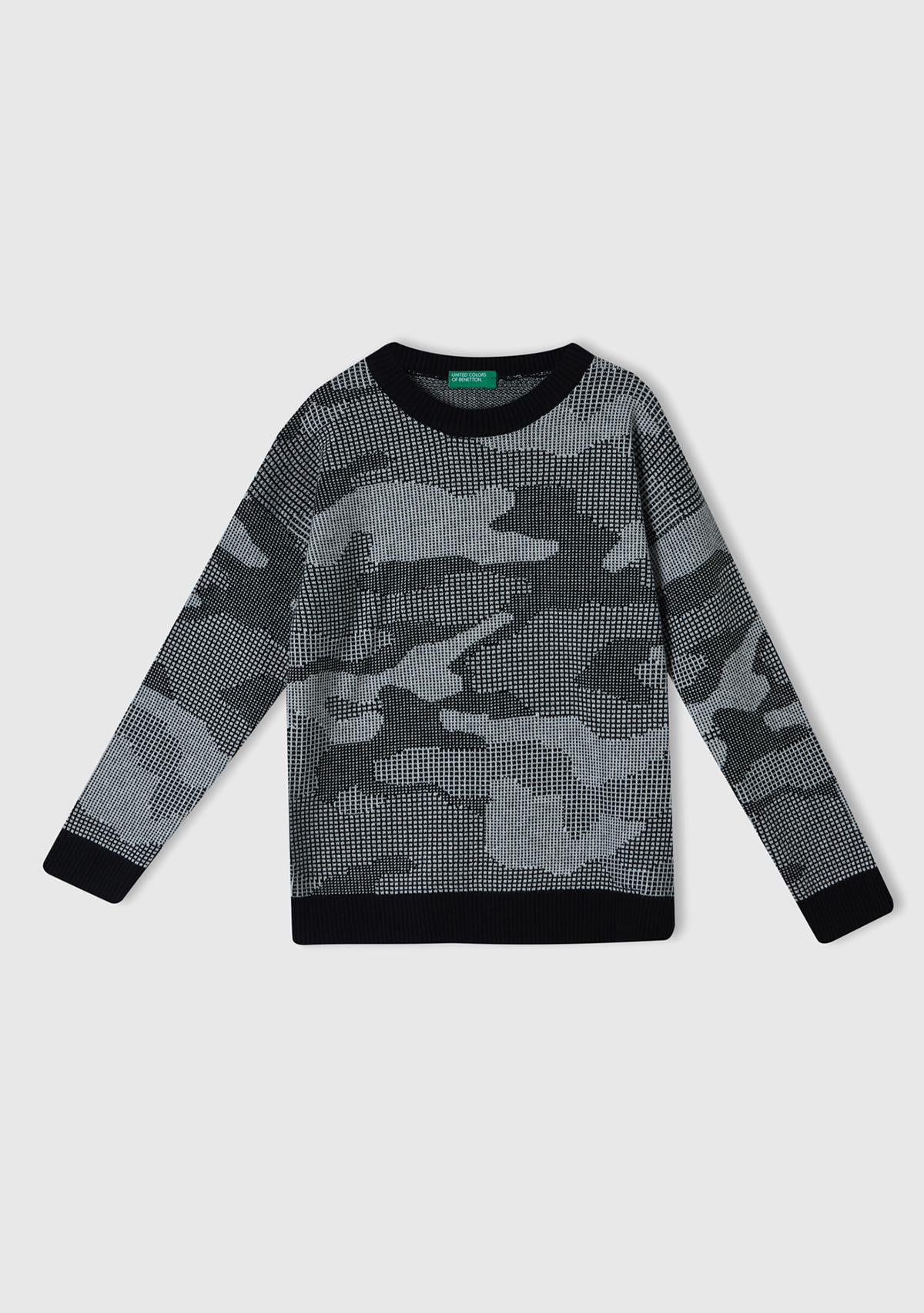 Erkek Çocuk Siyah Kamuflaj Desenli Kazak