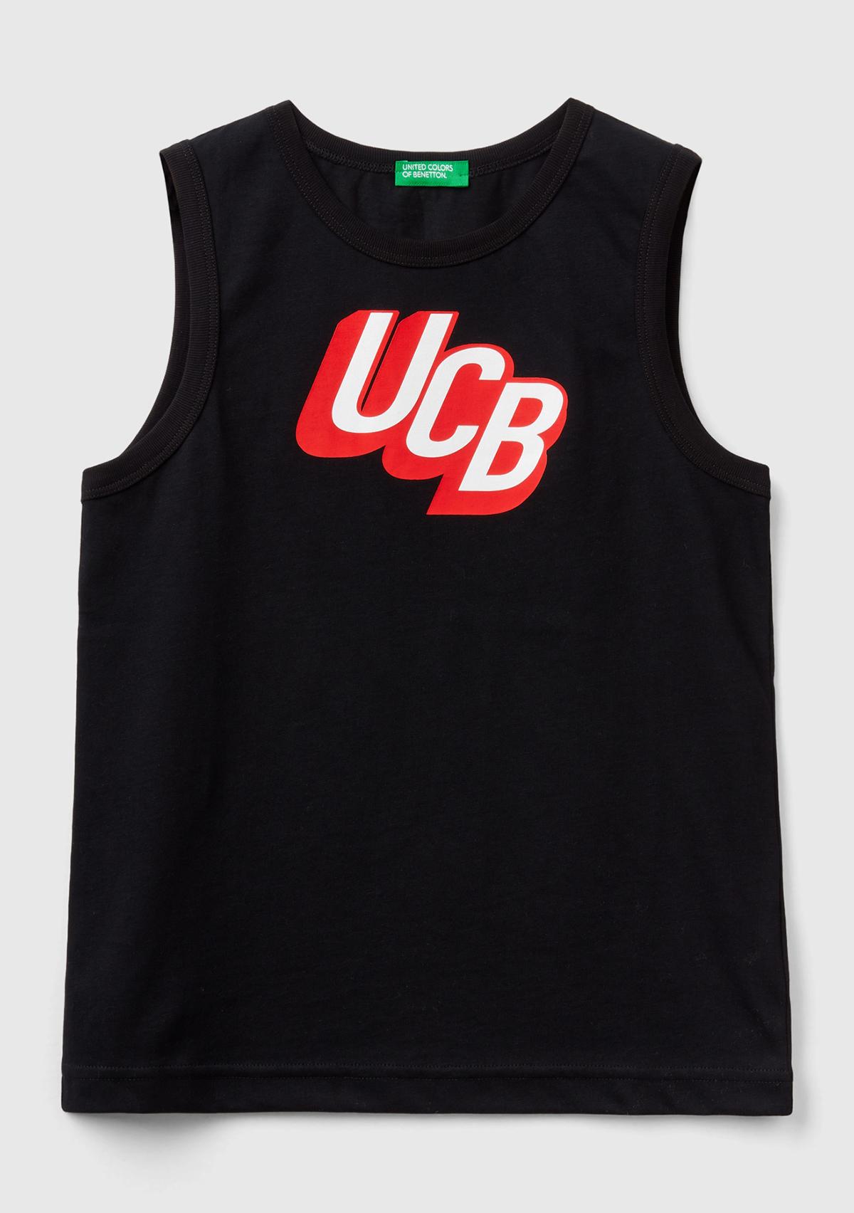 Erkek Çocuk Siyah Logo Baskılı Kolsuz Atlet