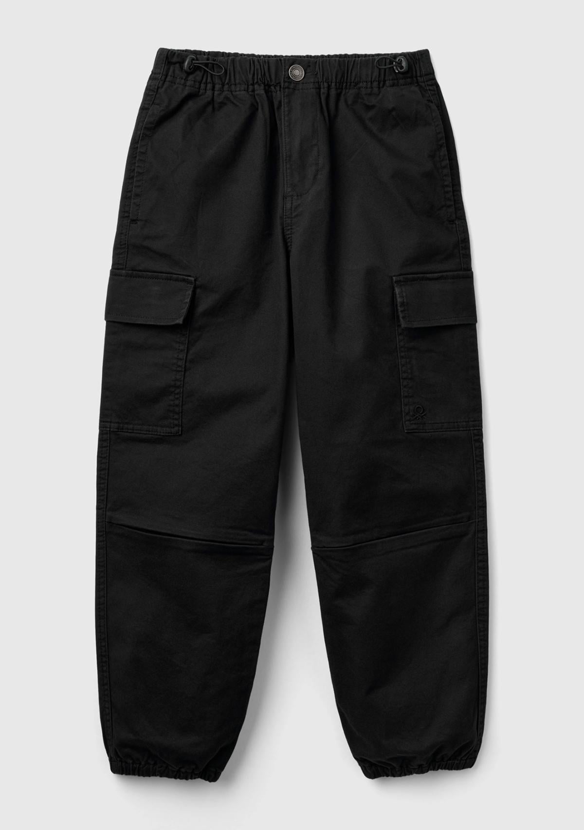 Erkek Çocuk Siyah Ön Cebi Logo Detaylı Beli Lastikli Beş Cepli Pantolon