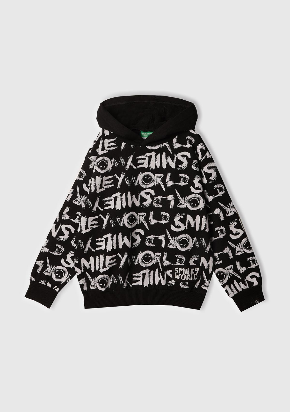 Erkek Çocuk Siyah Tamamı Baskılı Kapüşonlu Sweatshirt