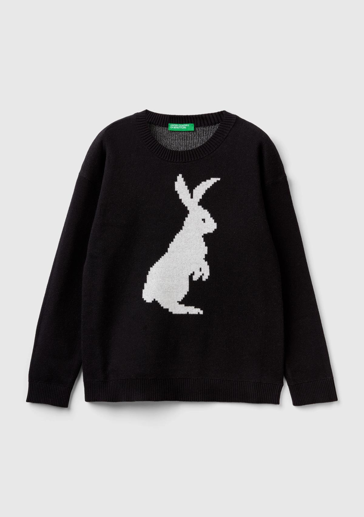 Erkek Çocuk Siyah Tavşan Desenli Kazak
