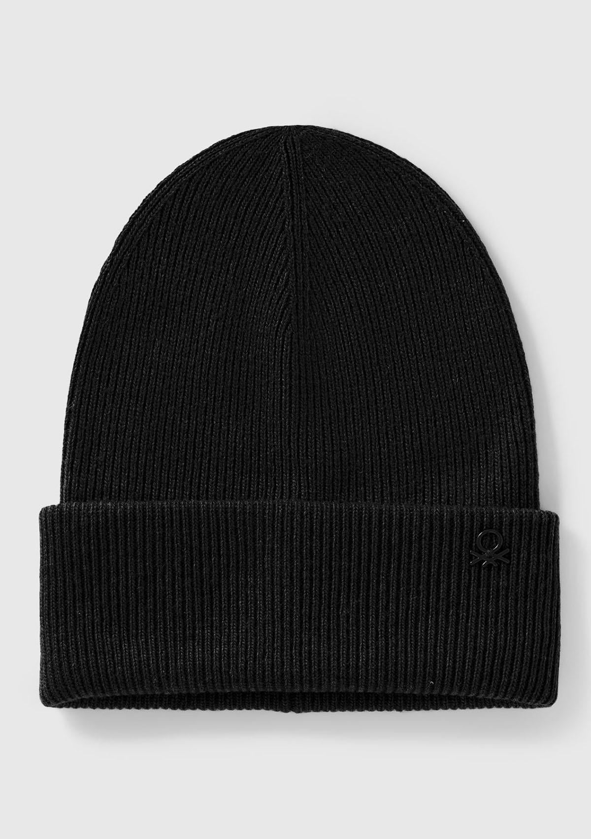 Erkek Çocuk Siyah Yün ve Viskoz Karışımlı Logo Nakışlı Bere