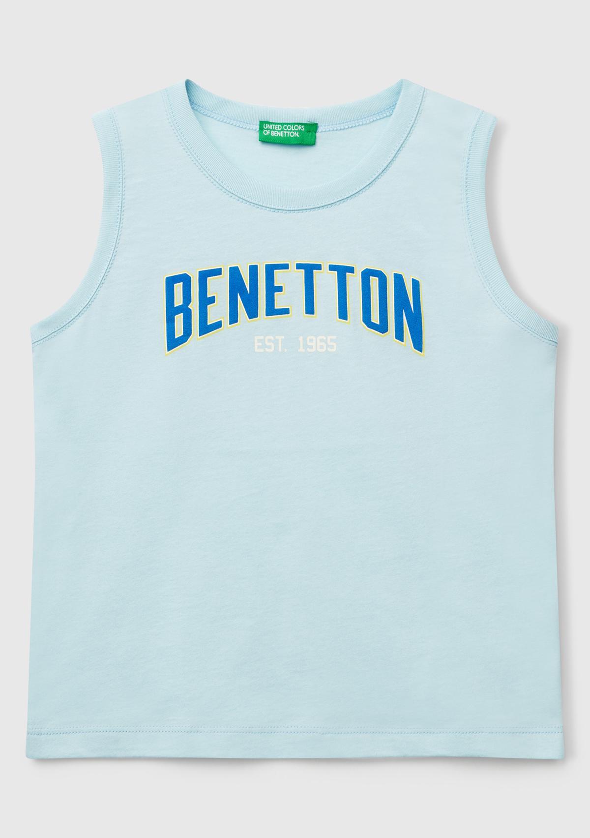 Erkek Çocuk Turkuaz Benetton Logo Baskılı Kabartma Detaylı Atlet