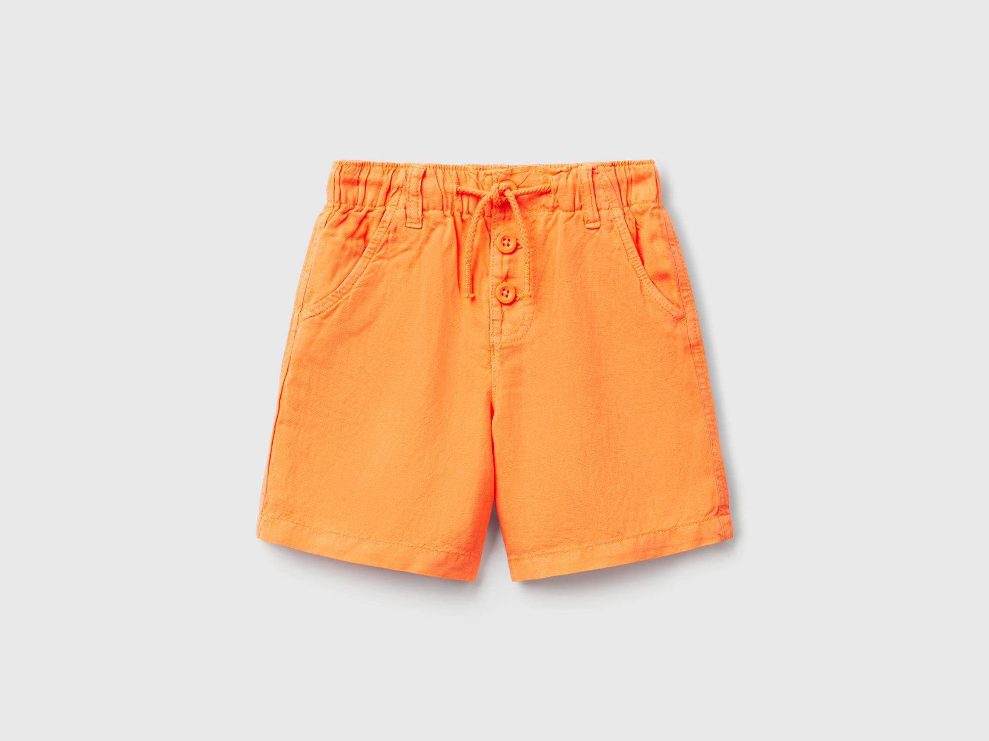 Erkek Çocuk Turuncu Liyosel ve Keten Karışımlı Düğmeli Büzgü İpli Bermuda Şort