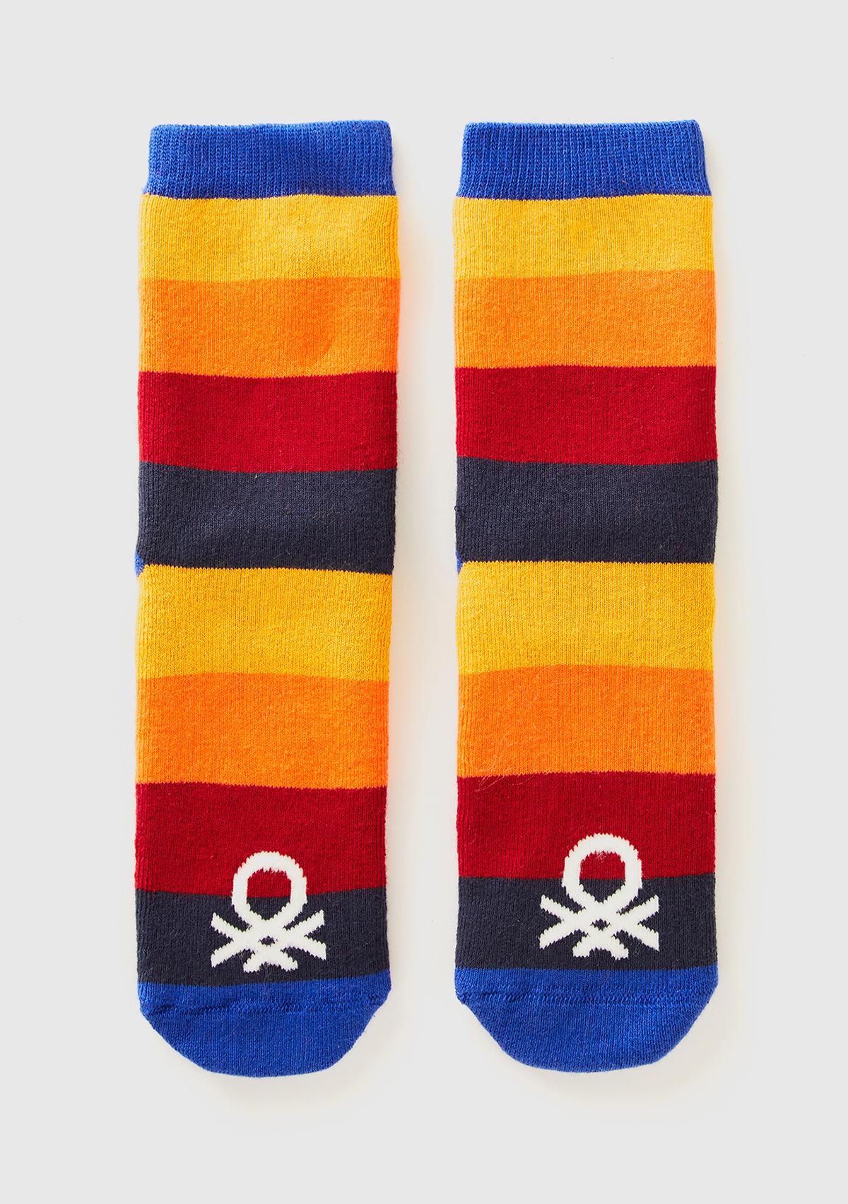 Erkek Çocuk Turuncu Mix Desenli Altı Kaydırmaz Uzun Soket Çorap