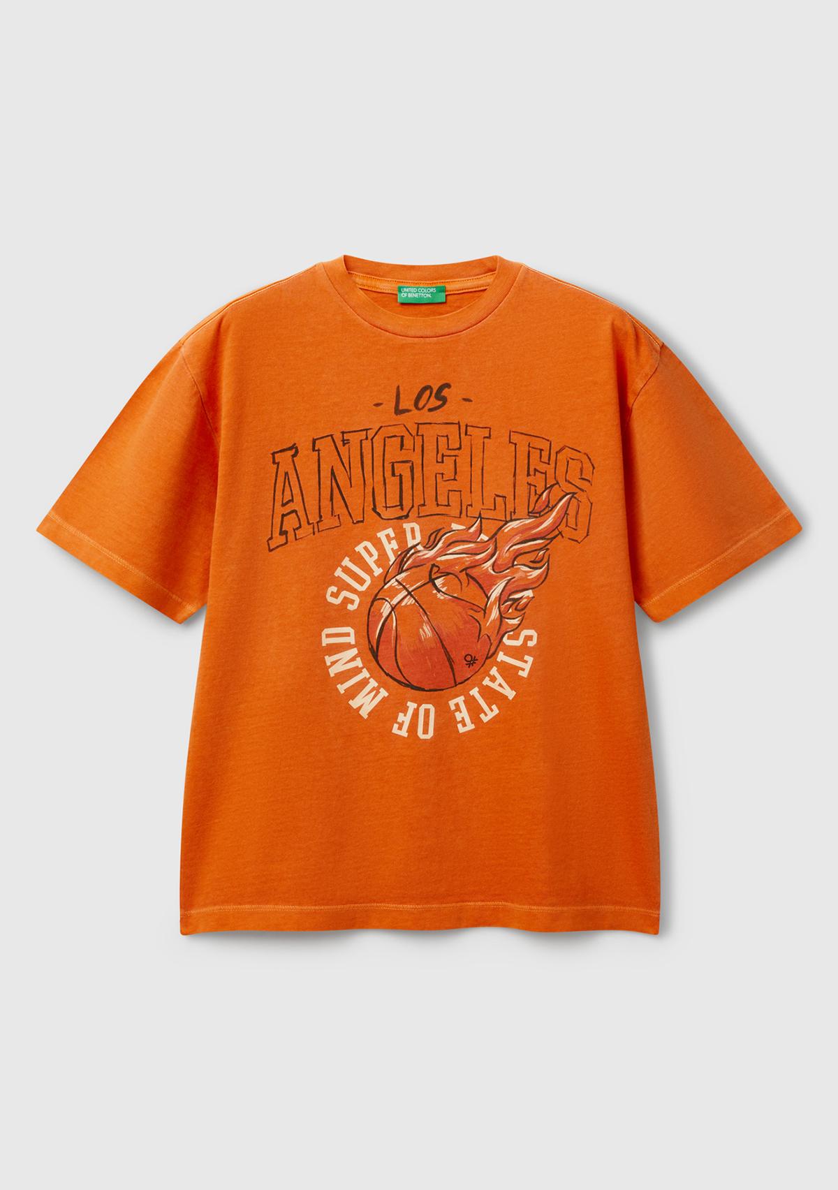 Erkek Çocuk Turuncu Slogan Baskılı Soluk Efektli T-Shirt