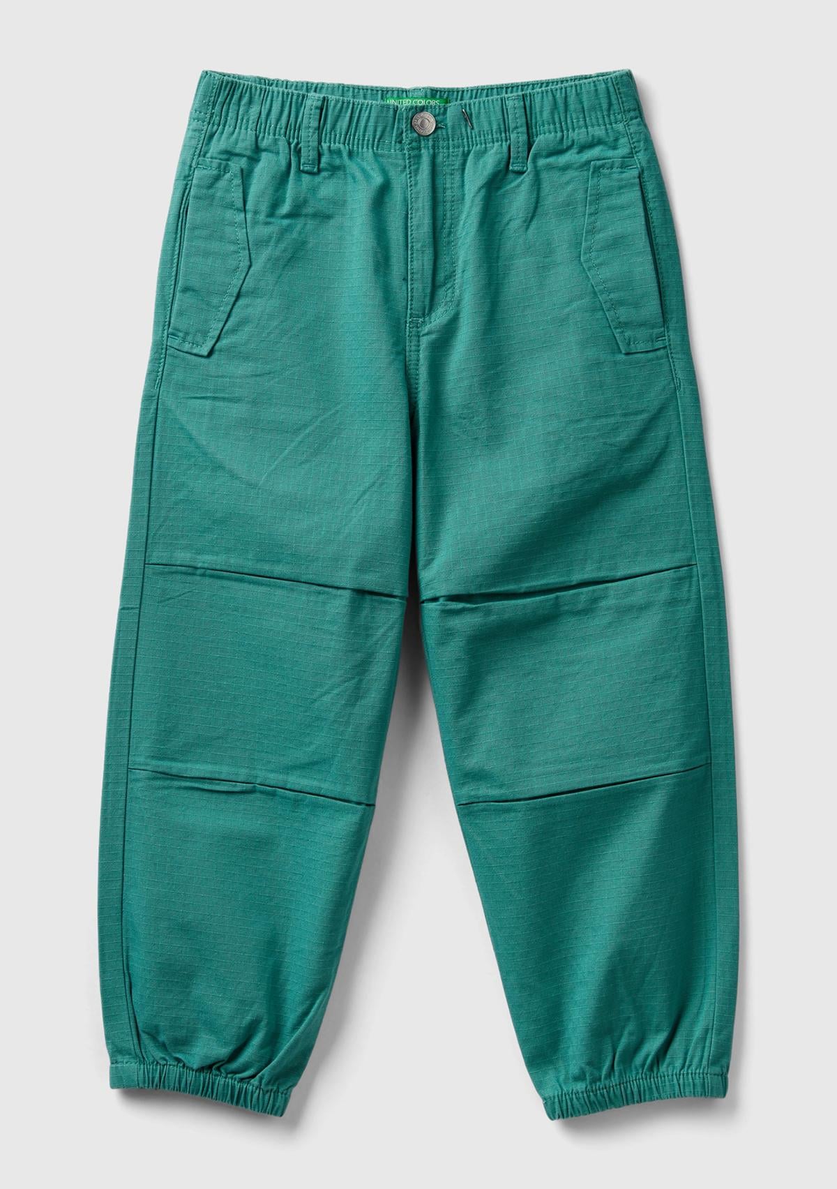 Saf pamuklu kumaştan üretilmiş, beli ve paçası büzgülü, fermuarlı ve çıtçıt düğmeli, beli kemer delikli, gadget detaylı erkek çocuk bol kesim pantolon. Ön kısmında kapaklı, arka kısmında biyeli cepleri bulunan bu rahat kesim pantolon, trend görünümüyle sokak stili için biçilmiş kaftan!