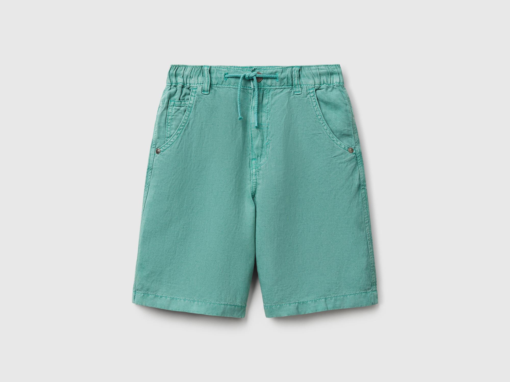 Erkek Çocuk Yeşil Liyosel ve Keten Karışımlı Büzgü İpli Cepli Bermuda Şort
