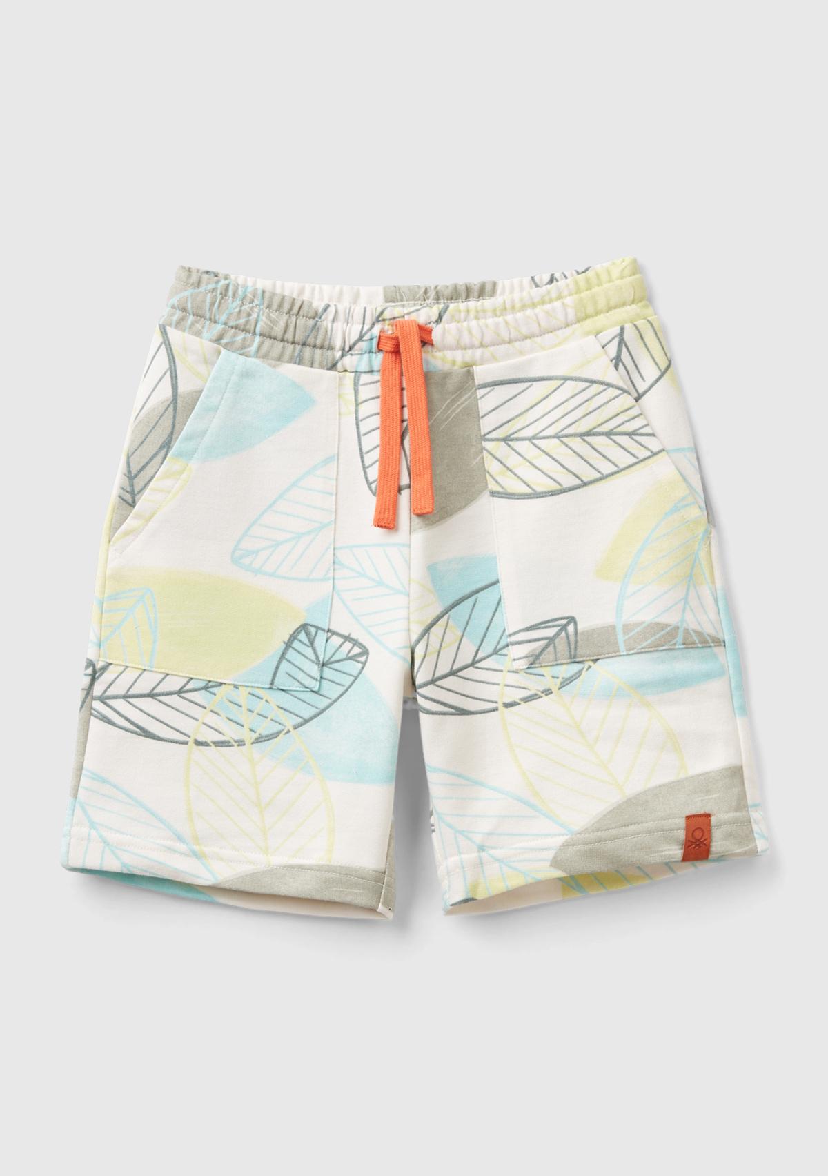 Erkek Çocuk Yeşil Mix Büzgü İpli Logo Etiketli Desenli Bermuda Şort