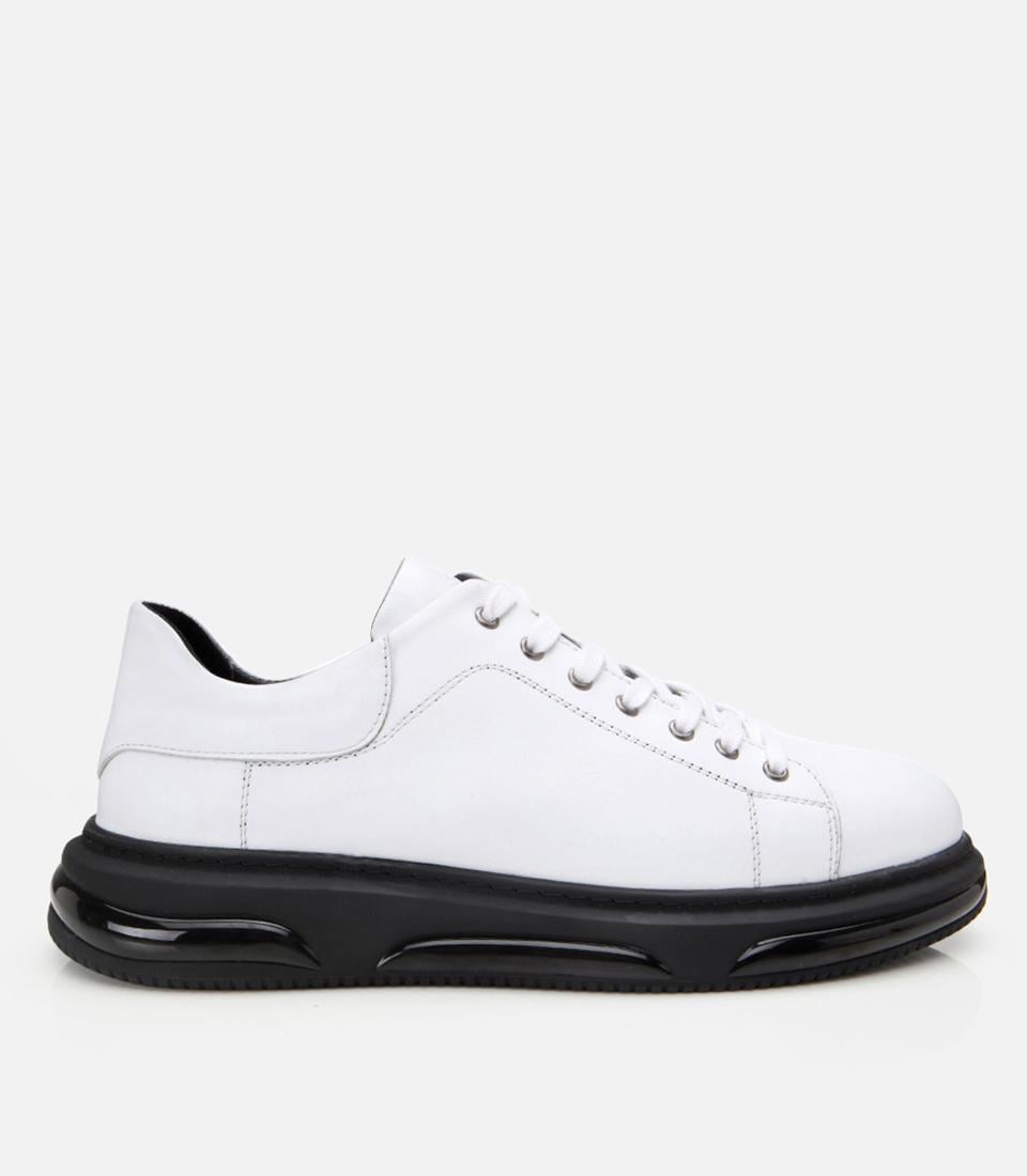 Erkek Deri Beyaz Hafif Tabanlı Spor Ayakkabı