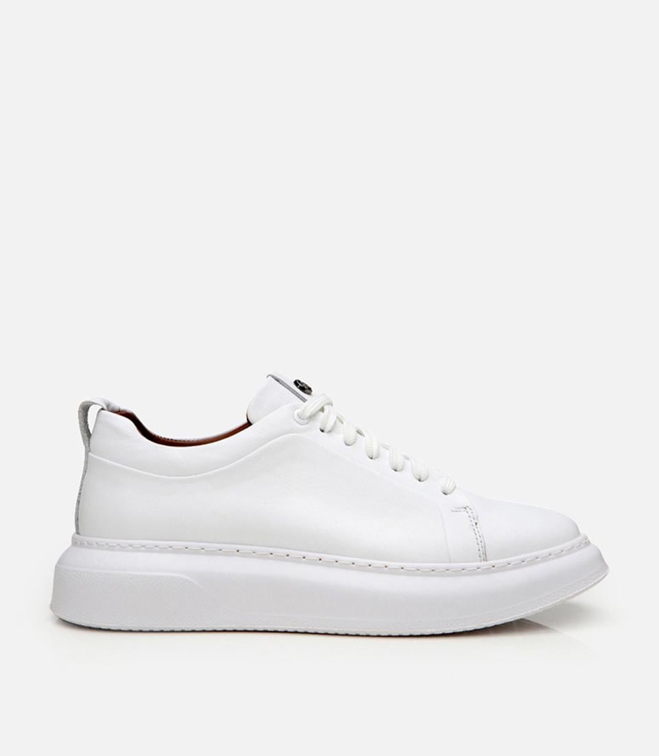 Erkek Deri Beyaz Hafif Tabanlı Spor Ayakkabı