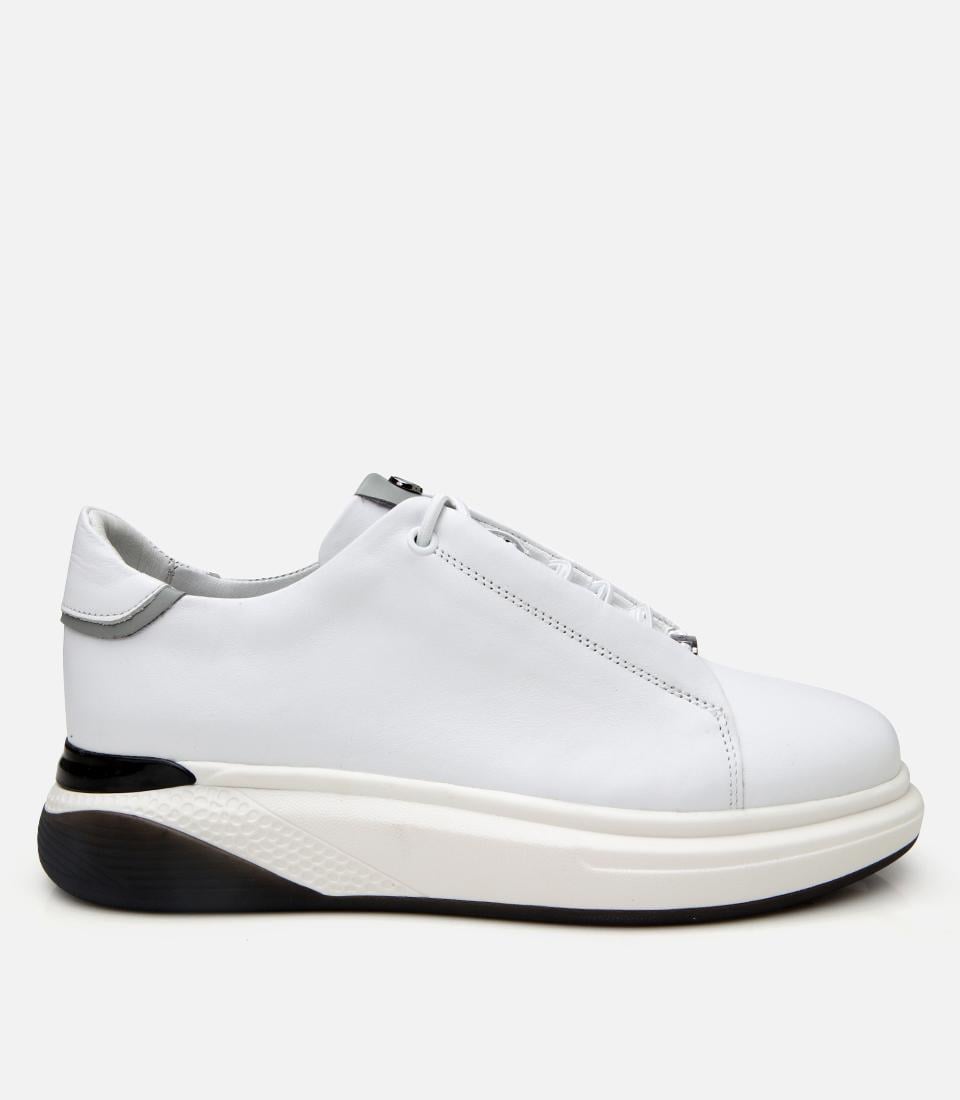Erkek Deri Beyaz Yüksek Tabanlı Spor Ayakkabı