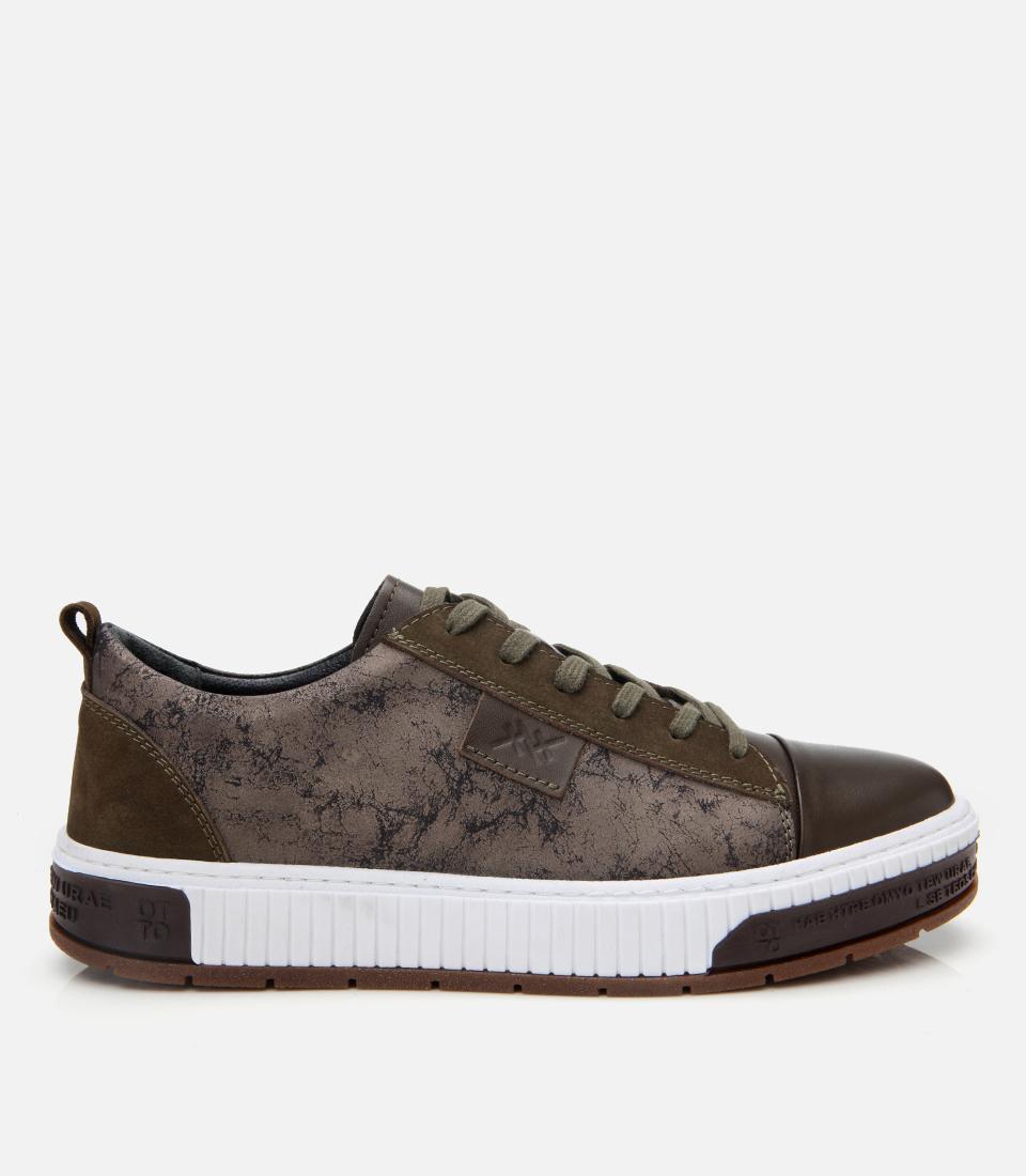 Erkek Deri Haki Baskılı Spor Ayakkabı
