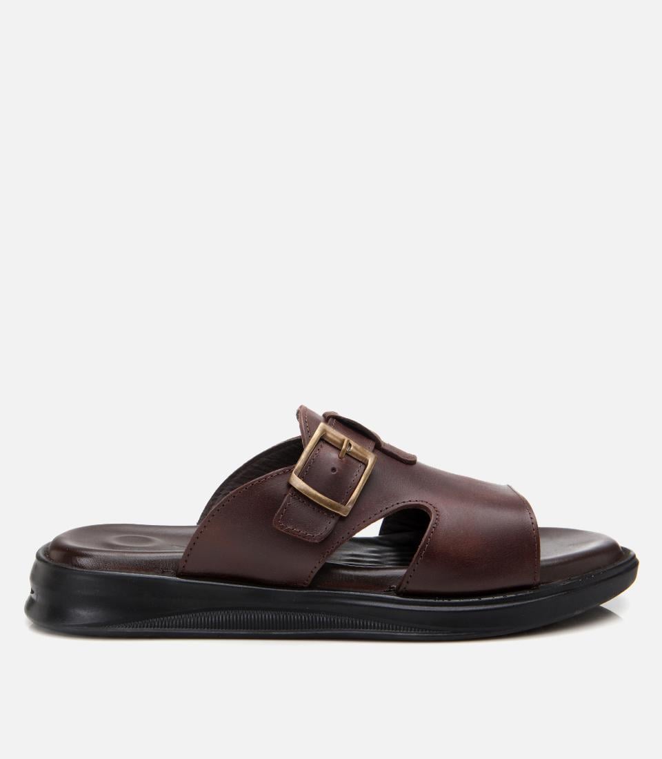 Erkek Deri Kahverengi Hafif Tabanlı Kemer Detaylı Terlik