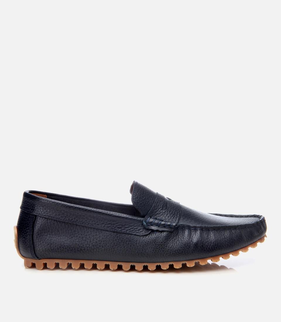 Erkek Deri Lacivert Esnek Tabanlı Günlük Loafer