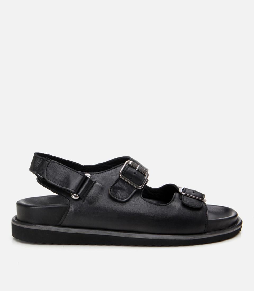 Erkek Deri Siyah Ayarlanabilir Rahat Tabanlı Sandalet