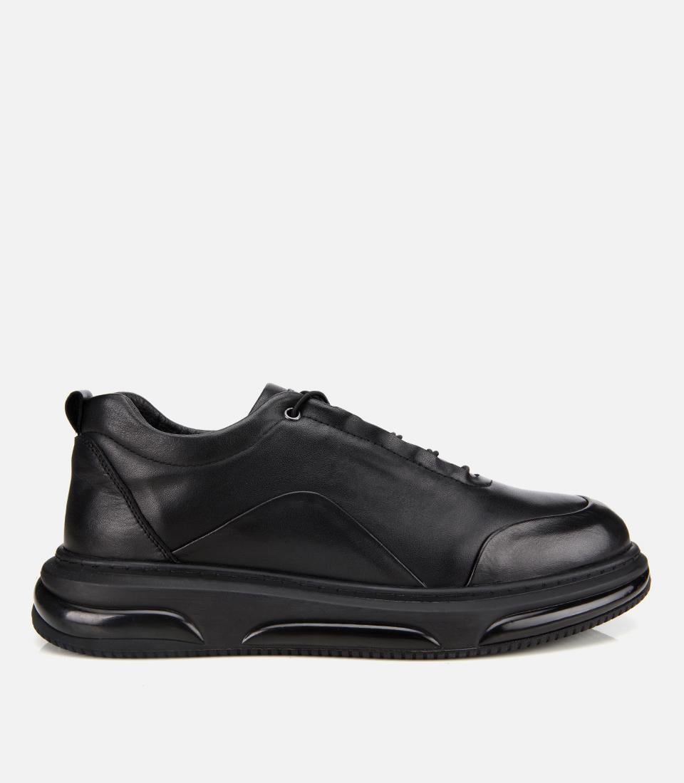 Erkek Deri Siyah Bağcık Detaylı Comfort Spor Ayakkabı