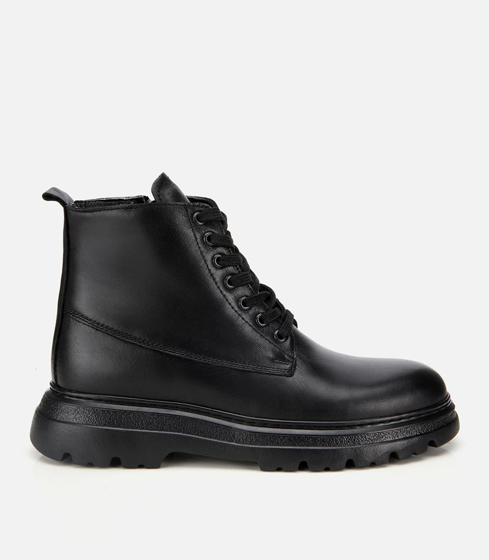 Erkek Deri Siyah Fermuarlı Yüksek Tabanlı Casual Bot