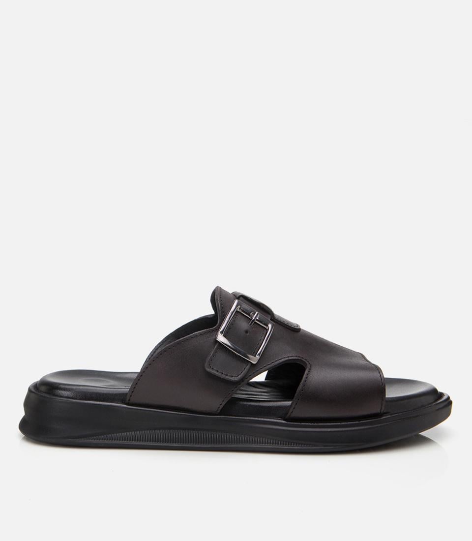Erkek Deri Siyah Hafif Tabanlı Kemer Detaylı Terlik