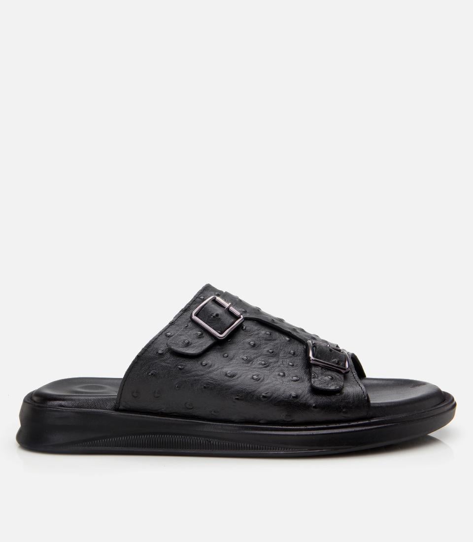 Erkek Deri Siyah Hafif Tabanlı Kemer Detaylı Terlik