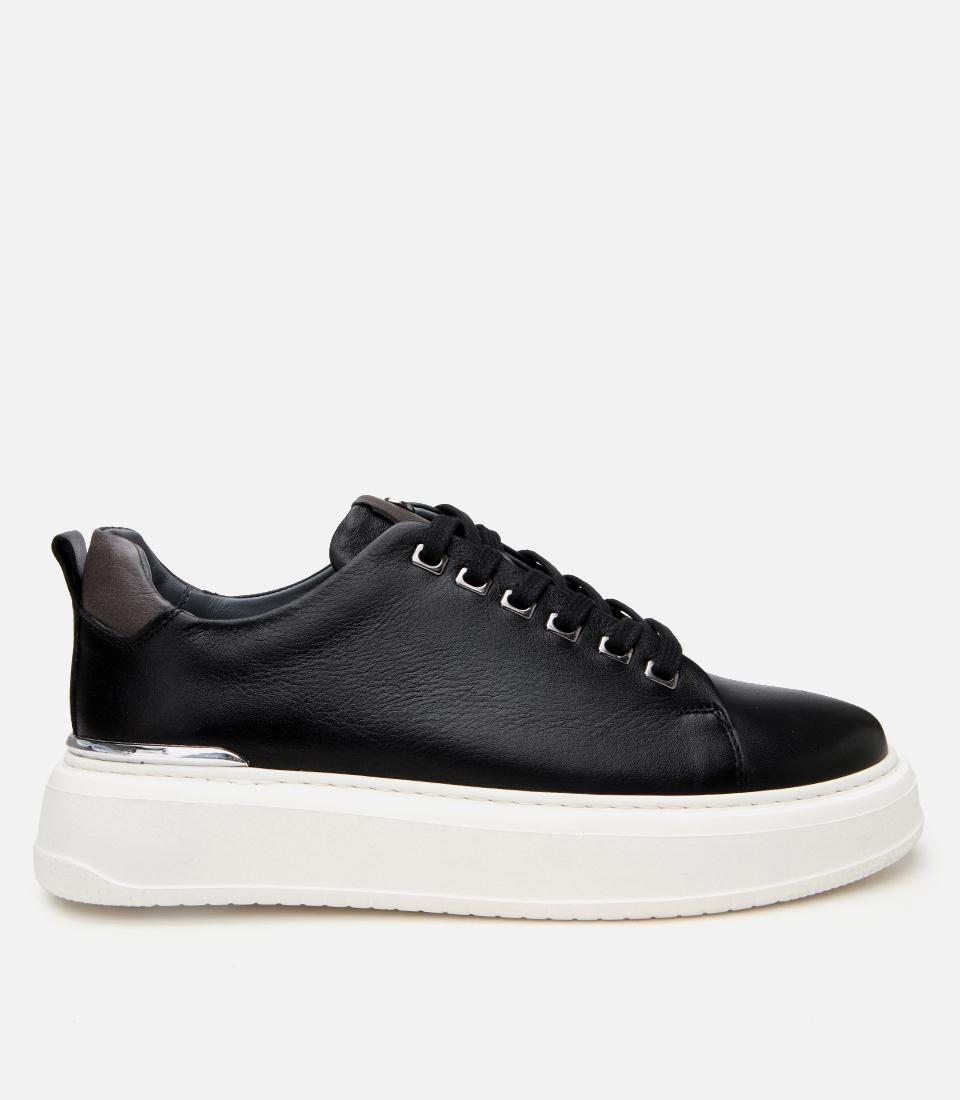 Erkek Deri Siyah Hafif Tabanlı Spor Ayakkabı