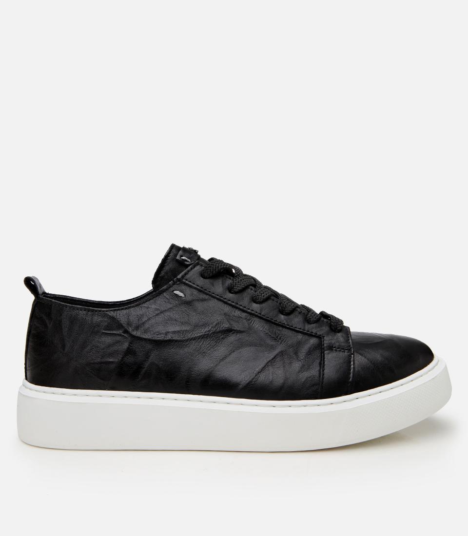 Erkek Deri Siyah Hafif Tabanlı Spor Ayakkabı