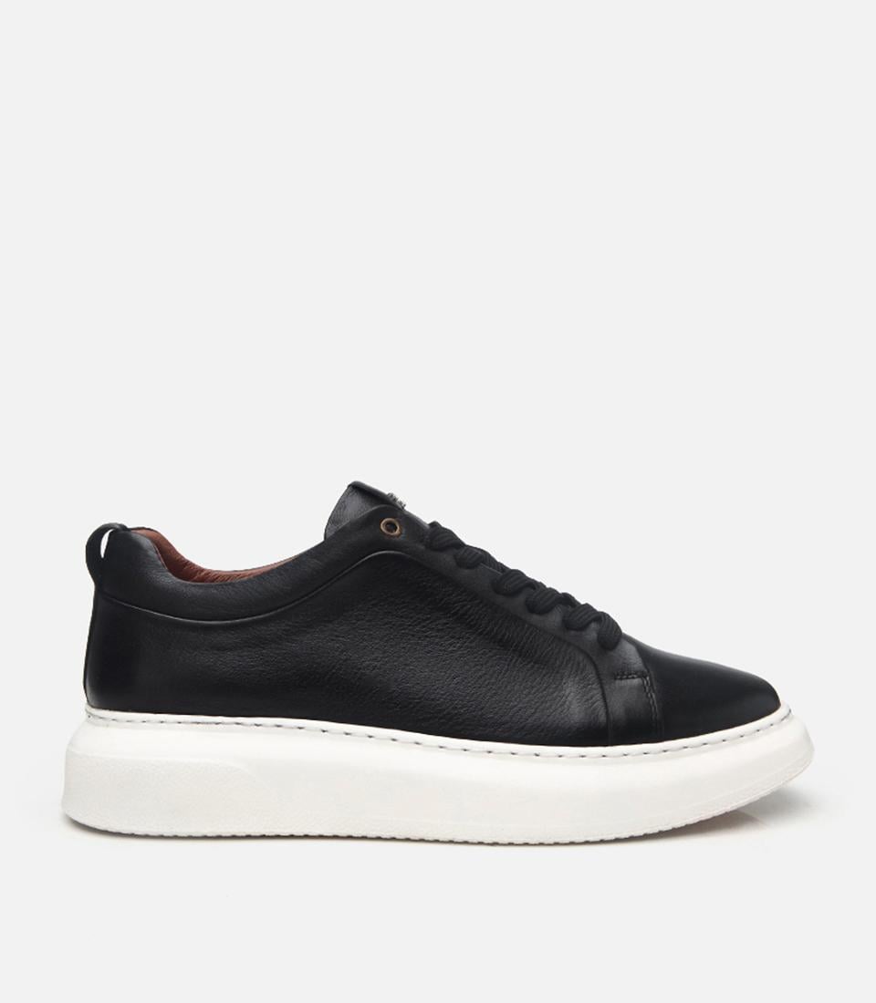 Erkek Deri Siyah Hafif Tabanlı Spor Ayakkabı