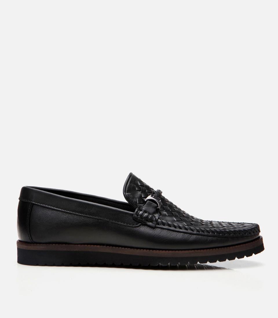 Erkek Deri Siyah Hafif Tabanlı Toka Detaylı Loafer