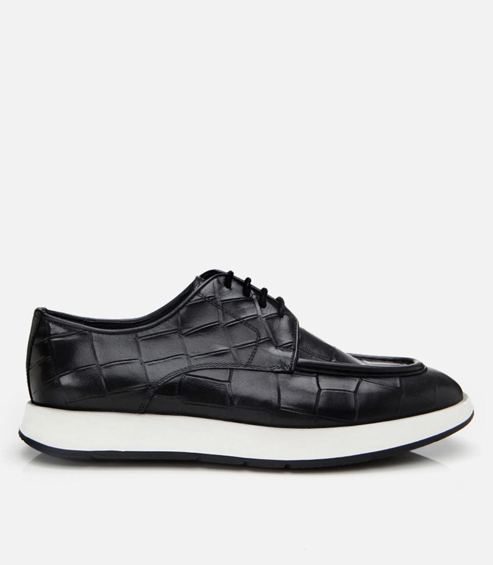 Erkek Deri Siyah Kroko Desenli Günlük Ayakkabı