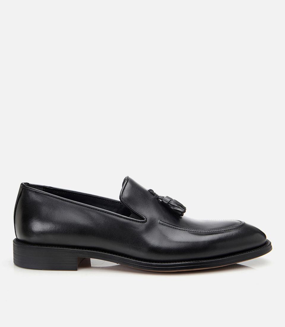 Erkek Deri Siyah Püskül Detaylı Klasik Loafer