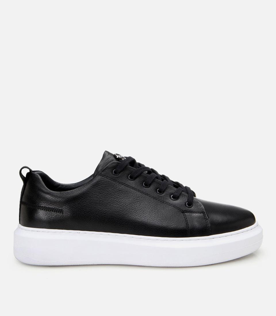 Erkek Deri Siyah Rahat Tabanlı Spor Ayakkabı